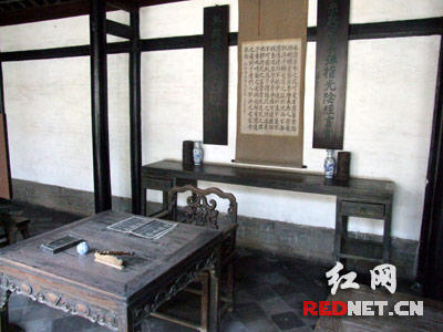 (故居内总,理童年读书的地方仍然如旧摆放着笔墨纸砚。)